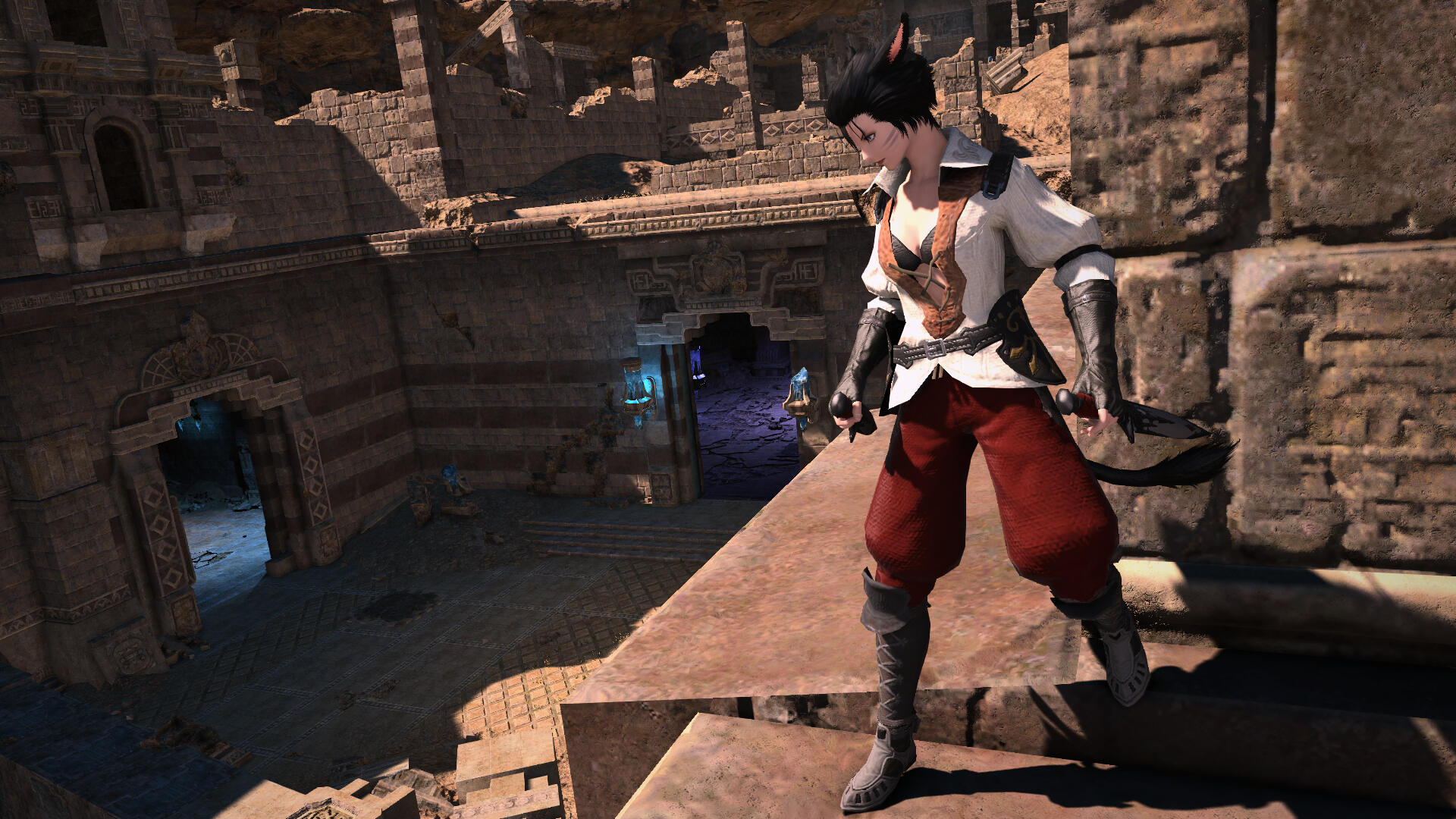 Enjoying fun is far from a unique trait, but Naia leans into it harder than most. Left to her own devices, this miqo'te would spend every waking moment prowling whichever city she's in - mastering the ebb and flow of swirling shoppers and toiling workers, pathfinding through alleyways and across rooftops, and cheering on each and every dancing woman and man. While not much of a drinker herself, watering holes are always such interesting places to her, and she's even learned how to mix some drinks of her own!